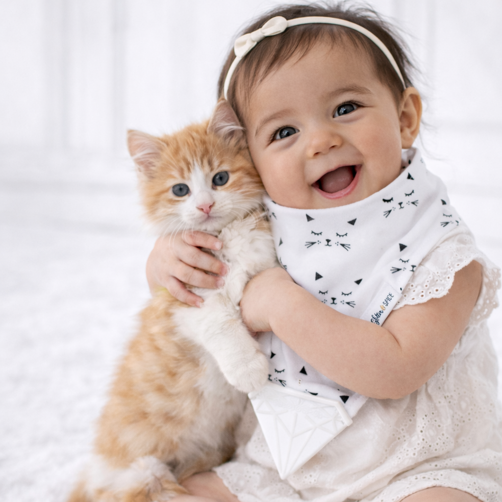 Our stylish Chew Bibs are the perfect accessory for your teething little. With teething comes drooling, so our absorbent bibs will keep your littles dry and stylish, while giving them something to chew on to relieve their sore, teething gums.